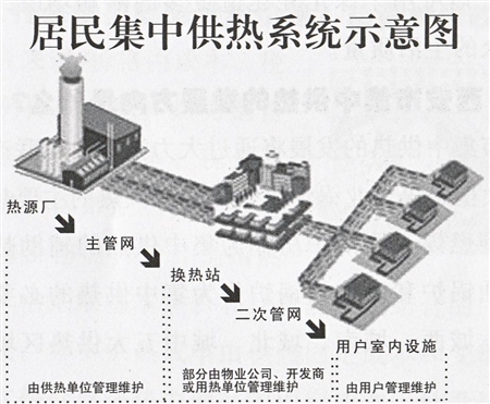 答:集中供热是由热源、热网、换热站、热用户四部分组成,目前按西安市供热行业管理模式,热力企业负责换热站之前用热设施的管理工作,换热站、二次网及用户由物业公司负责管理。